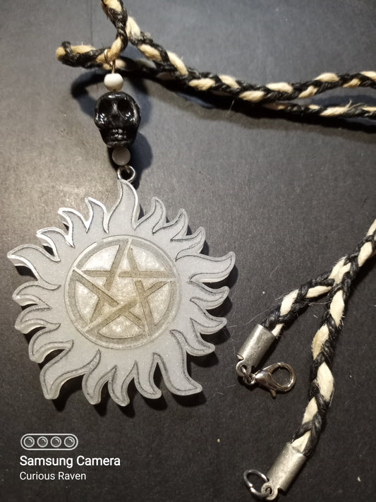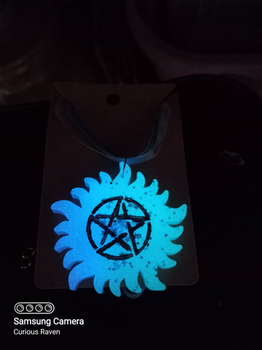 Anti-possession Charm Necklace White & Glow in the Dark Blue