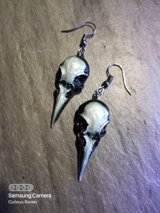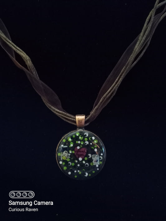 Antique White & Bronze Raven Skull Heart Cameo Necklace